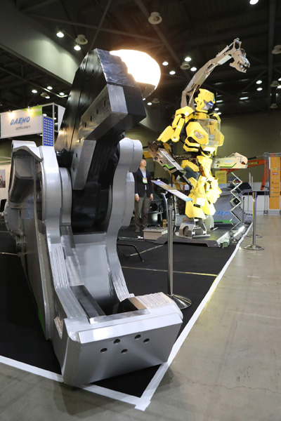 국내 유일의 자원순환 전문 전시회인 ‘국제자원순환산업전’이 27일 고양시 킨텍스에서 열렸다. 전시회에 참가한 한 업체 부스에는 전시용 로봇과 중장비들이 전시돼 있다. /연합뉴스