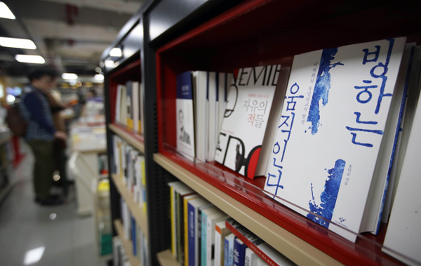 16일 서울시내 한 대형서점에 송민순 전 외교통상부 장관이 최근 발간한 회고록 ‘빙하는 움직인다-비핵화와 통일외교의 현장’이 진열돼 있다. 지난 2007년 유엔의 북한인권결의안 표결에서 노무현 정부가 북한에 사전의견을 구한 뒤 기권했다는 내용이 포함된 이 회고록을 두고 정치권 등을 중심으로 논란이 벌어지고 있다. /연합뉴스