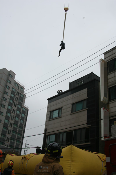 경찰과 소방당국은 에어 매트를 설치하고 구급차를 대기시켜 만일의 사태에 대비했다.