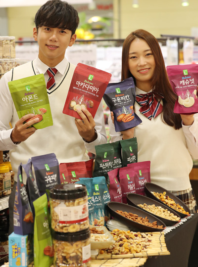 18일 오전 롯데마트 서울역점에서 수능을 앞둔 수험생 간식으로 다양한 견과류를 선보이고 있다. /연합뉴스