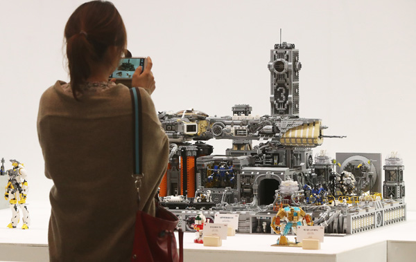 23일 오전 성남시 분당구 현대백화점 판교점에서 열리고 있는 국내 최대 규모의 레고 동호회 연합 전시회 ‘2016 브릭코리아 컨벤션-브릭, 예술이 되다’를 찾은 관람객들이 다양한 레고 창작 작품들을 살펴보고 있다. /연합뉴스