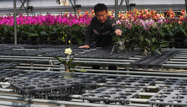 결혼 성수기에 다가오는 수능 등으로 화훼 수요가 한창 많을 시기지만 청탁금지법의 영향으로 화훼농가의 어려움이 커지고 있다. 사진은 24일 용인시 남사면의 한 호접란 재배농가 비닐하우스 한쪽이 텅 비어 있는 모습. /연합뉴스