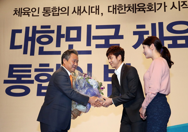 이기흥 회장은 지난달 체육회장 선거에서 당선돼 3월 대한체육회와 국민생활체육회 통합 이후 첫 통합 회장에 취임했다.