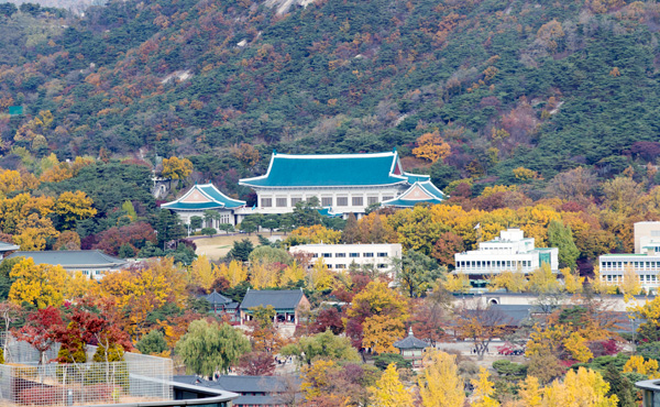 붉게 물든 청와대 가족회사 ‘정강’ 공금 유용 등 각종 비위 의혹이 제기된 우병우 전 청와대 민정수석 비서관이 서초동 서울중앙지검에 출석한 6일 청와대 주변에 단풍이 물들어 있다./연합뉴스