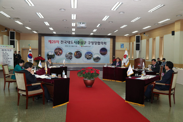 전국 6개 대도시 중심구 구청장들이 5일 ‘제28차 전국대도시중심구 구청장 협의회’에서 동시공동화 문제와 관련해 대책을 논의하고 있다. /중구 제공