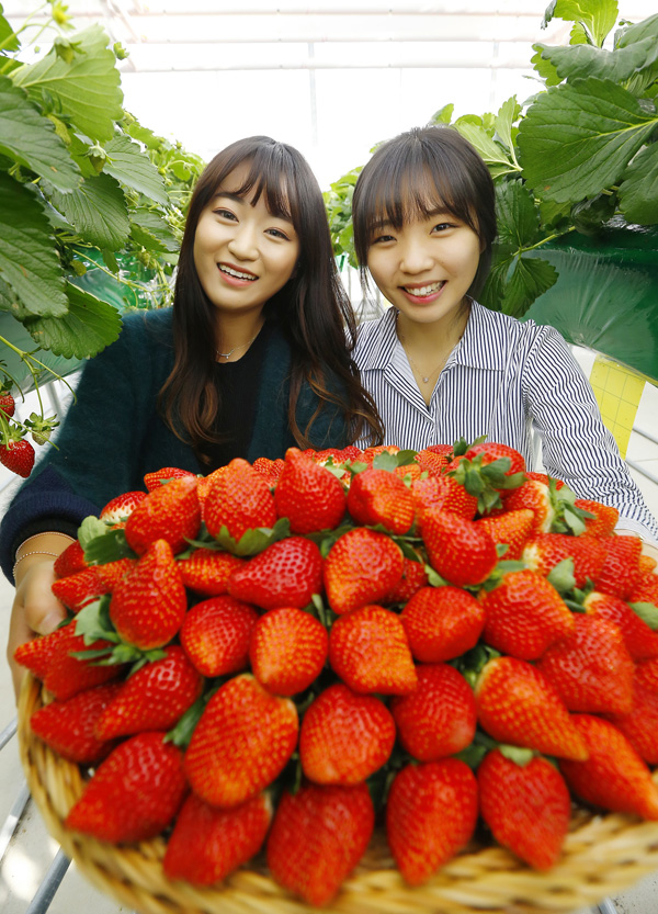 6일 오후 농촌진흥청 국립원예특작과학원에서 연구원들이 시험 연구용으로 재배 중인 국산 딸기를 수확하고 있다. 겨울철에 생산된 딸기는 봄철 딸기에 비해 당함량이 높고 신맛이 적어 품질이 뛰어나다./농진청 제공
