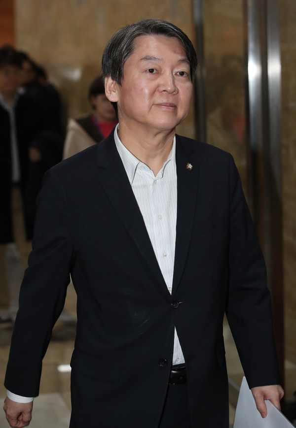 국민의당 안철수 전 대표가 박근혜 대통령 탄핵소추안 표결이 이뤄지는 9일 오후 국회 본회의장으로 들어가고 있다./연합뉴스