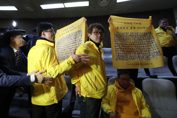 아이들 영정을 들고...