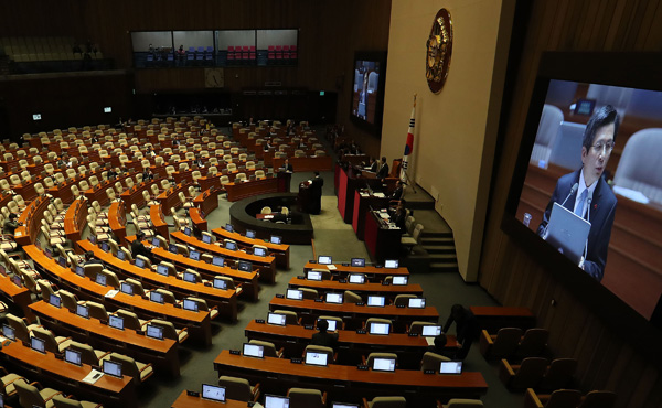 20일 오후 열린 국회 본회의 경제분야 대정부질문. 황교안 대통령 권한대행 국무총리가 답변하는 동안 많은 의원들이 자리를 비워 썰렁한 모습이다./연합뉴스
