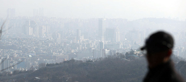 성탄절인 25일 오후 서울 도심이 미세먼지로 뿌옇게 보이고 있다. 환경부 국립환경과학원은 수도권과 강원 영서, 충청권, 전북에 미세먼지 농도가 '나쁨' 수준이라고 예보했다./연합뉴스