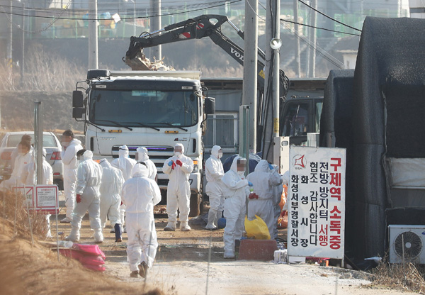 고병원성 조류인플루엔자(AI) 확산으로 인한 가금류 살처분 마릿수가 3천만 마리를 넘어선 3일 오후 의심신고가 접수된 화성시의 한 산란계 농장 주변 농가에서 예방적 살처분이 진행되고 있다. /연합뉴스