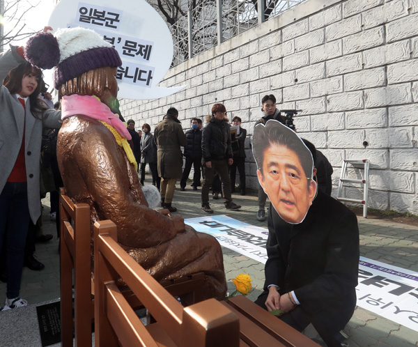 소녀상에 사죄하는 아베 ‘퍼포먼스’