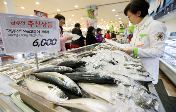 4일 오후 롯데마트 서울역점에서 마트 측 품질감독관이 수산물의 원산지 표시 및 위생관리 상태 등을 확인하고 있다. 앞서 29개 정부기관이 참여한 불량식품근절추진단은 지난 2일부터 40일간 설 명절을 맞아 제수용, 선물용 농·축·수산물 등에 대한 원산지 표시와 위생관리 실태 등을 집중적으로 단속한다고 밝혔다./연합뉴스