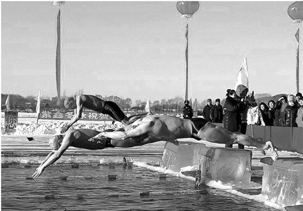 부주장 천해란이 대회 개막식에 참석했다. 19개 나라와 지역 겨울철 수영애호가들이 대회에 대거 참가한 가운데 최고령 선수는 73세에 달했다. 하루동안 진행된 경기는 25메터 접영, 자유영, 평영 3가지 종목에서 남자 갑조(51세 이상)와 을조(50세 이하), 녀자 갑조(46세 이상)와 을조(45세 이하)로 펼쳐졌다. 언 호수를 뚫어 만든 25메터 길이의 수영장 수온은 물과 얼음의 림계점에 달해 매 선수에게는 쉽지 않은 도전이였다.