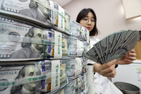 원·달러 환율이 전일 대비 11.3원 내린 1,146.8원으로 장을 마감한 2일 오후 서울 중구 을지로 KEB하나은행 본점에서 직원이 달러를 정리하고 있다. 작년 마지막 거래일인 12월 29일 1,207.7원과 비교하면 불과 한 달여 사이에 60.9원 급락한 것으로, 종가 기준으로는 작년 11월 8일(1,135.0원) 이후 86일 만에 최저치를 기록했다. /연합뉴스
