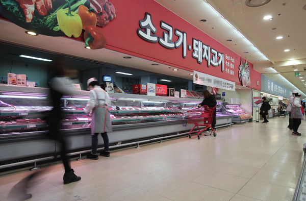 최근 조류인플루엔자(AI) 사태에 이어 구제역 파동까지 더해지면서 계란·닭고기, 우유·쇠고기 공급 차질로 가격 상승하고 있는 13일 오후 서울의 한 대형마트 정육코너가 한산하다./연합뉴스