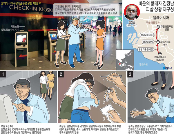 다음은 이 원장의 정보위 보고를 토대로 재구성한 김정남 암살 사건의 전모.