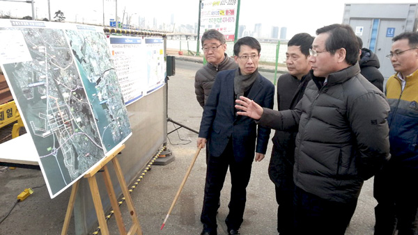 유정복 인천시장이 28일 연수구 옥련동 응암교차로 교통 정체 예상지역 현장을 방문해 교통 소통의 흐름을 파악하고 있다. /인천시 제공