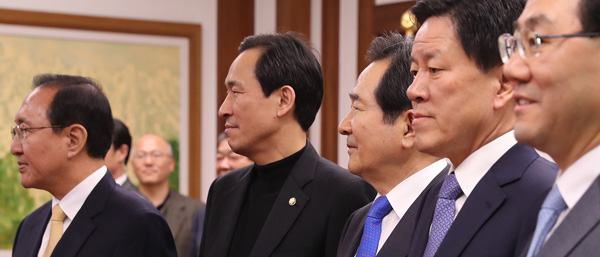 정세균 국회의장은 28일 더불어민주당 우상호·국민의당 주승용·바른정당 주호영·정의당 노회찬 원내대표와 회동을 하고 특검연장법의 직권상정이 사실상 어렵다는 뜻을 밝혔다.