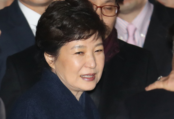 헌재의 탄핵 심판 선고에서 파면당한 박근혜 전 대통령이 12일 오후 청와대를 떠나 서울 강남구 삼성동 사저에 도착하고 있다./연합뉴스