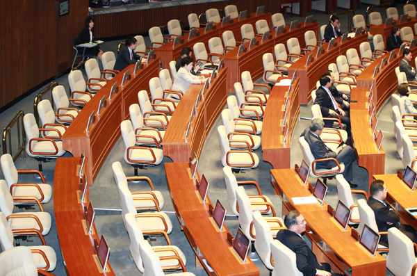 본회의 중반부터 끝날 때까지 본회의장 의석에는 40여명만 자리를 지켰다.