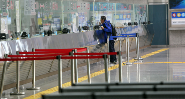 중국 정부가 한국으로의 단체관광을 전면 금지한 뒤 첫 국제여객선이 입항한 16일 오전 인천시 중구 인천항 제1국제여객터미널 매표소가 한산한 모습이다. 전날 오후 6시께 중국 다롄(大連)에서 출발해 이날 오전 9시 30분께 인천항 제1국제여객터미널에 들어온 대인훼리의 비룡호에는 모두 75명이 탔다. 승객 정원 510명의 15%도 채우지 못했다. 단체관광객은 한 명도 없었다. /연합뉴스