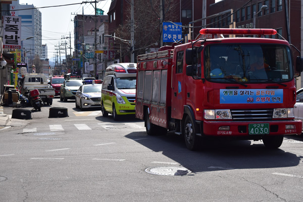 동두천소방서, ‘소방차 길 터주기‘ 훈련