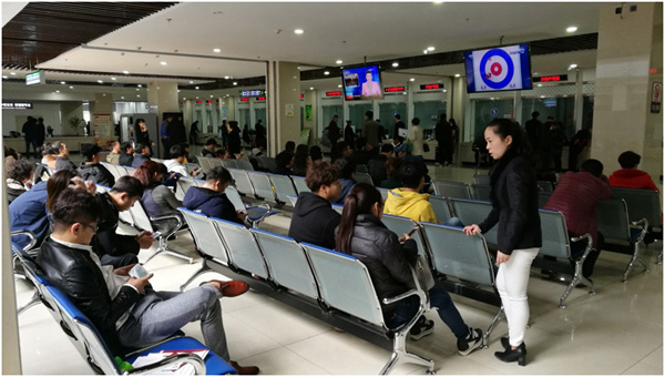 21일 오후, 연길시가옥거래대청에는 중고주택 소유권명의변경, 중고주택대출 수속을 밟으러 온 시민들로 북적이고있었다. 대청안 긴 벤치에는 부동산 관련 업무 수속을 기다리는 군중들로 자리를 꽉 메우고있었다.