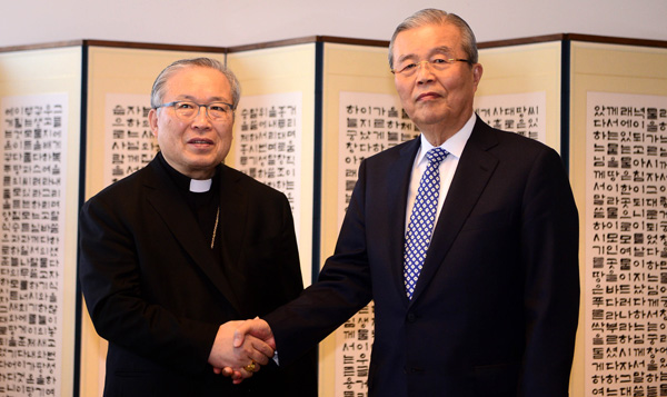 김 전 대표는 이날 중구 명동성당 내 서울대교구에서 염 추기경을 면담한 자리에서 “내일 모레쯤 출사표를 낼 것을 생각해 추기경님께 인사드리러왔다”고 말했다.