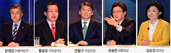 조기 대선을 26일 앞둔 각 당의 대선후보 5명이 13일 오전 첫 TV 합동토론회에서 맞붙으며 본격적인 ‘장미 전쟁’의 시작을 알렸다.