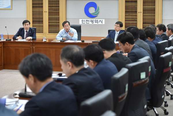 유정복 인천시장이 25일 시청 영상회의실에서 열린 간부회의에서 시의 재정이 건전화 된 내용과 관련해 홍보의 중요성을 강조하고 있다. /인천시 제공