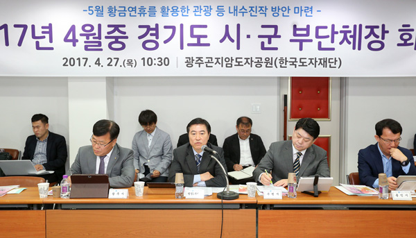 이재율 경기도 행정1부지사가 27일 오전 경기도 광주 한국도자재단 1층 세미나실에서 열린 ‘2017년 4월 경기도 시·군 부단체장 현장회의’를 주재하고 있다. /경기도 제공