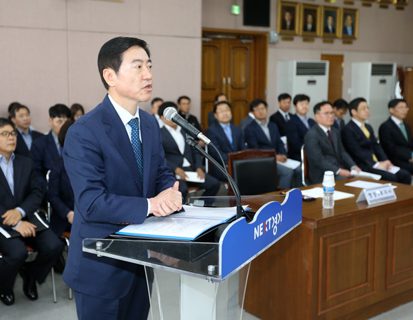 1일 오전 경기도청 신관4층 제1회의실에서 열린 ‘2016 회계연도 경기도 결산검사’에서 이재율 경기도 행정1부지사가 간부소개 및 인사말을 하고 있다. /경기도 제공