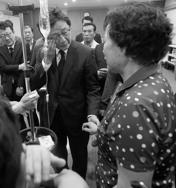 유 후보는 유족들을 만나며 눈물을 보이기도 했다.