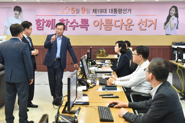 유 시장, 시청사 대통령선거 상황실 근무자 격려