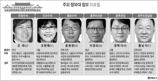 여야는 11일 문재인 대통령이 단행한 조국 민정수석, 조현옥 인사수석, 윤영찬 홍보수석 등 청와대 수석 인선에 대해 엇갈린 반응을 내놨다.