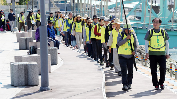 종교·문화계 인사들과 시민으로 구성된 ‘416희망순례단’이 15일 오후 인천시 중구 인천항 연안여객터미널에서 세월호 참사 희생자들을 추모하는 도보순례를 시작하고 있다. /연합뉴스
