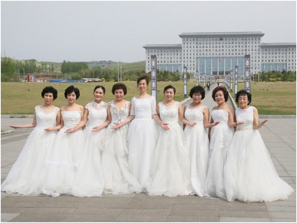 곱게 단장을 마친 로인들은 서둘러 촬영장소인 연길시아리랑광장으로 향했다. 순백의 웨딩드레스에 면사포까지 예쁘게 쓴 로인들의 모습은 시민들의 시선을 끌었고 사진작가들은 로인들의 아름다운 모습을 렌즈에 담느라 바빴다.