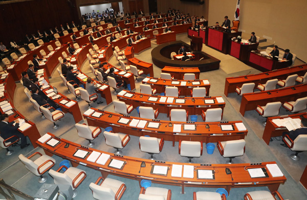 10일 오후 국회에서 열린 예산결산특별위원회 2차 전체회의에 자유한국당, 바른정당,국민의당 의원들이 불참하고 있다. /연합뉴스