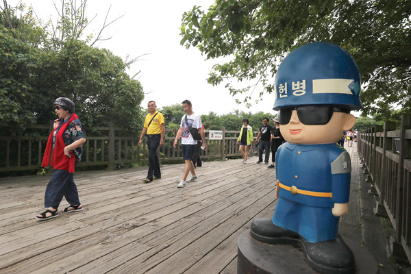 정부가 군사분계선 일대의 적대행위 중지를 위한 남북 군사당국회담을 북측에 공식 제의한 17일 파주시 임진각에서 관광객들이 자유의 다리를 둘러보고 있다. /연합뉴스