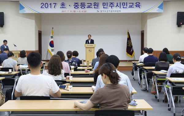 경기도선거관리위원회가 미래유권자의 올바른 주권의식 함양에 필요한 교수능력을 배양하고 미래유권자에 대한 민주시민교육의 중요성 이해 증진을 위해 도내 초·중등교원 40명을 대상으로 31일부터 오는 4일까지 민주시민교육과정 직무연수를 실시하고 있다. /경기도선거관리위원회 제공