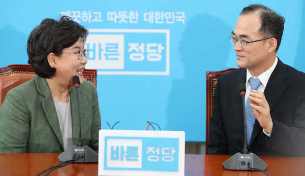 문무일 검찰총장(오른쪽)이 1일 오후 국회를 방문해 바른정당 이혜훈 대표와 면담을 하고 있다. /연합뉴스