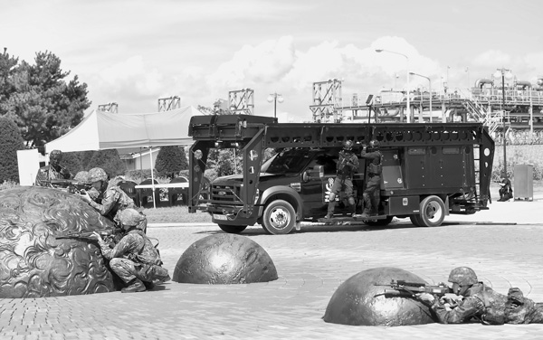 22일 송도 한국가스공사 가스과학관에서 ‘2017 을지연습 실제훈련’이 진행되고 있다. /인천시 제공