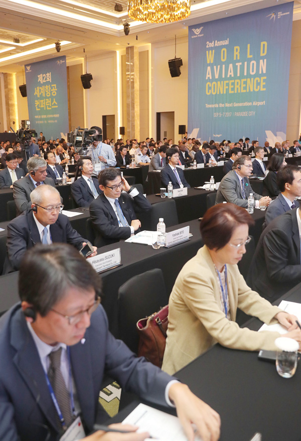 전 세계 100개국 700여 명의 항공·공항 전문가가 모여 세계 항공업계의 현안과 발전방향을 논의하는 ‘제2회 세계항공컨퍼런스’ 개회식이 6일 오전 인천시 중구 파라다이스시티에서 열리고 있다. /연합뉴스
