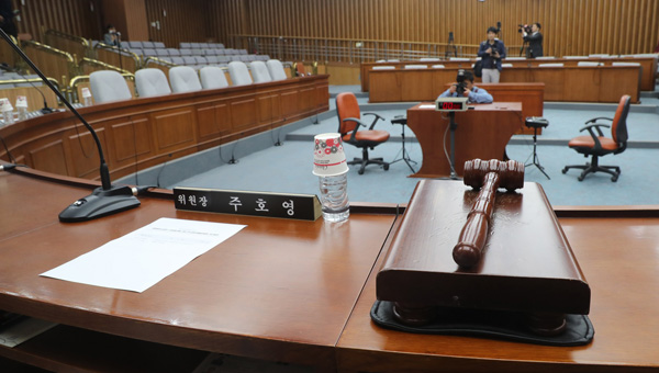 18일 오전 국회에서 열릴 예정이던 김명수 대법원장 후보자 임명동의에 관한 인사청문특별위원회 전체회의가 여야간 이견으로 오전회의가 열리지 않고 있다./연합뉴스