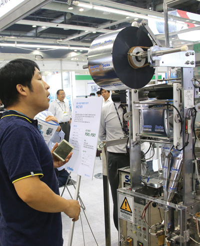 19일 고양 킨텍스 제2전시장에서 열린 한국포장전 2017에서 관람객이 포장기기를 살펴보고 있다. /연합뉴스