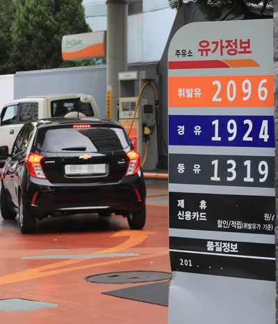 9일 한국석유공사 유가 정보 서비스 오피넷에 따르면 주유소 휘발유 판매가격은 ℓ(리터)당 1천502.71원, 경유 가격은 1천293.43원을 기록했다. 사진은 서울시내 한 주유소 모습./연합뉴스