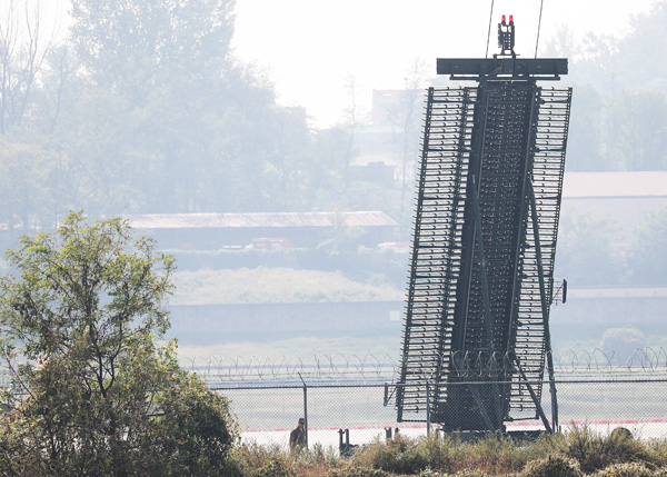북한 노동당 창건기념일을 하루 앞둔 9일 오전 …평택시 주한미공군 오산기지에 대공 감시 레이더가 가동되고 있다./연합뉴스