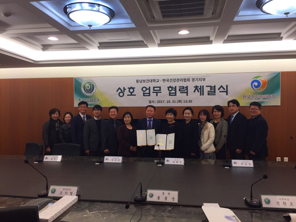 31일 동남보건대학교 국제회의실에서 열린 협약식에서 양 기관은 수원FMS센터에서 의뢰하는 수원시 거주 외국인 근로자검진, 수원FMS센터에서 의뢰하는 수원시 거주 다문화가족 건강검진, 의료지원 등을 약속했다.
