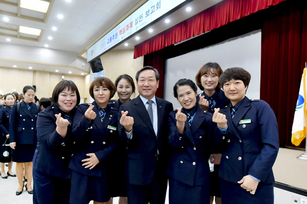 유정복 인천시장이 7일 시청 대회의실에서 ‘시민이 행복한 애인정책(愛仁)VII’을 발표한 후 참석자들과 기념촬영을 하고 있다. /인천시 제공